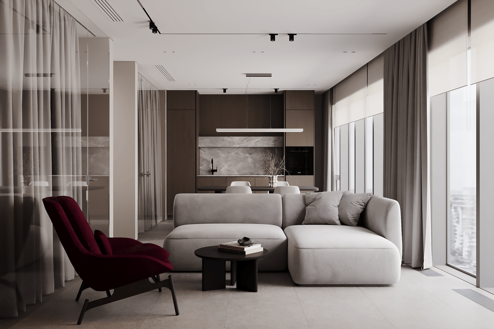 3d visualization | Kitchen and living room_A6_2024